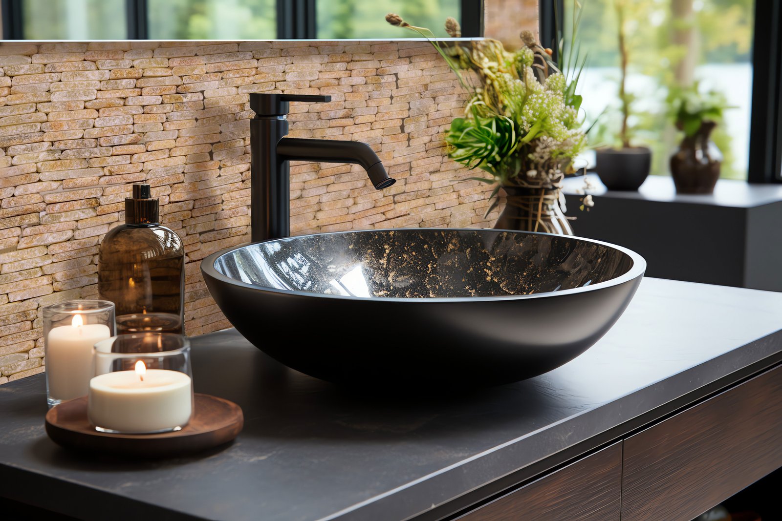 MABL57 - Black Strip Honed&Sanded Blasted Mosaic